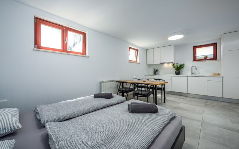 Villa Savudria Lighthouse offers four bedrooms, one studio apartment, five bathrooms, a very bright living room together with a dining area and a big kitchen.